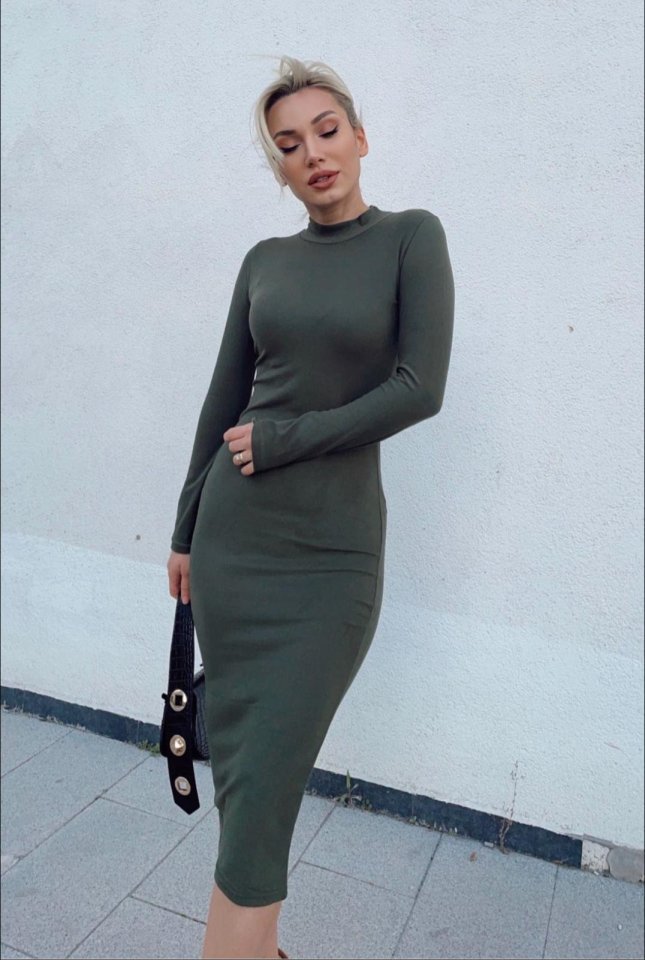Kadın Yarım Balıkçı Yaka Süet Kumaş Fırsat ürün Midi Boy Elbise