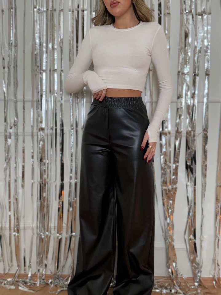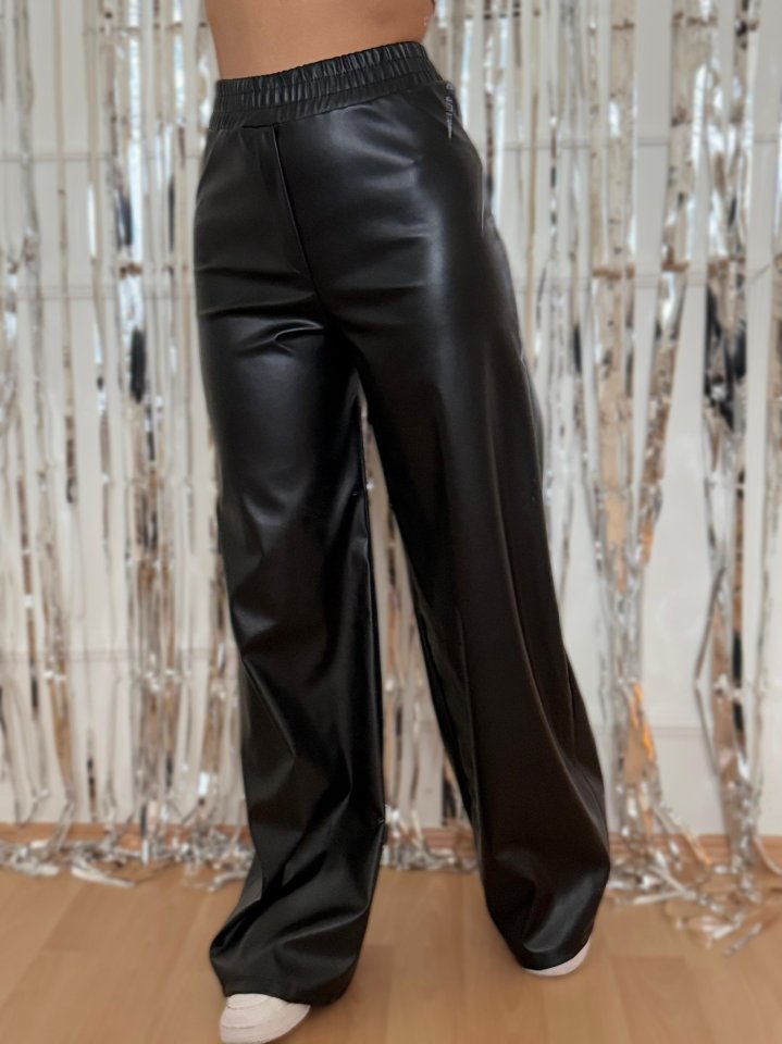 Kadın Yılbaşı özel Yüksek Bel Beli Lastikli Geniş Paçalı Deri Pantolon