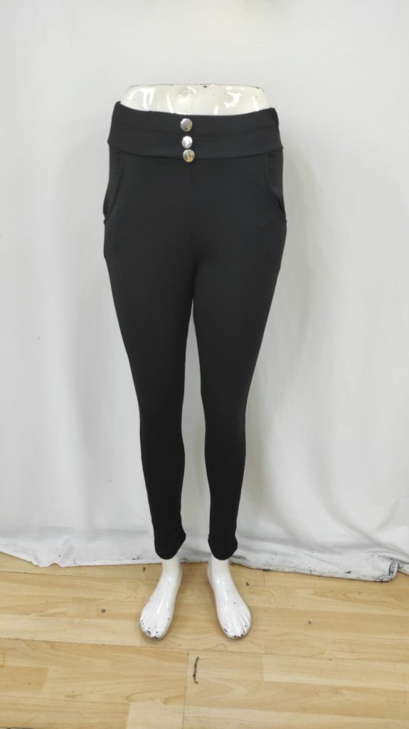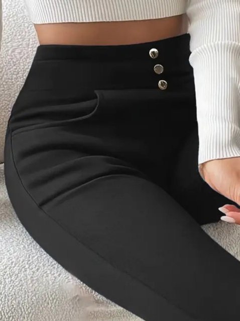 Kadın Yüksek Bel Cepli Düğmeli şardonlu Dalgıç Tayt Pantolon