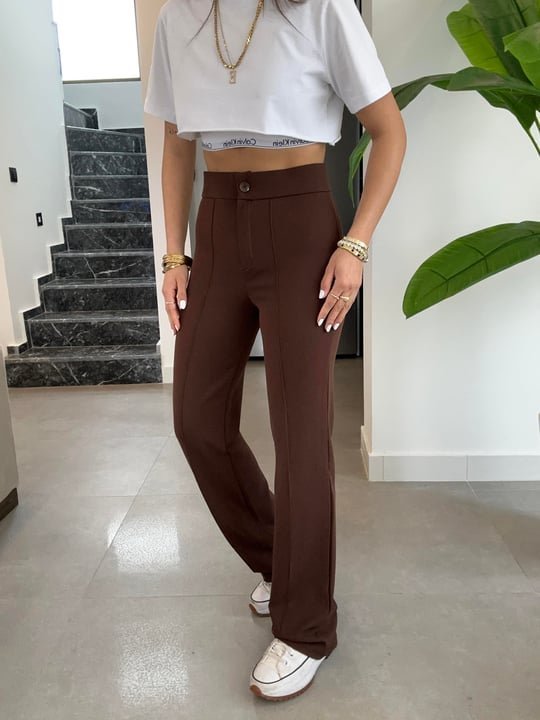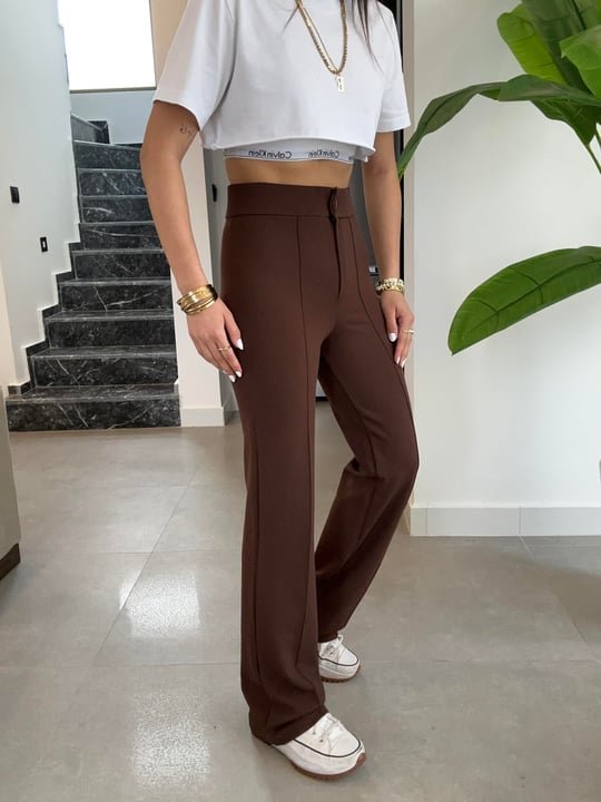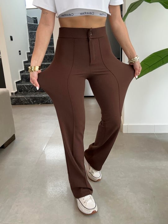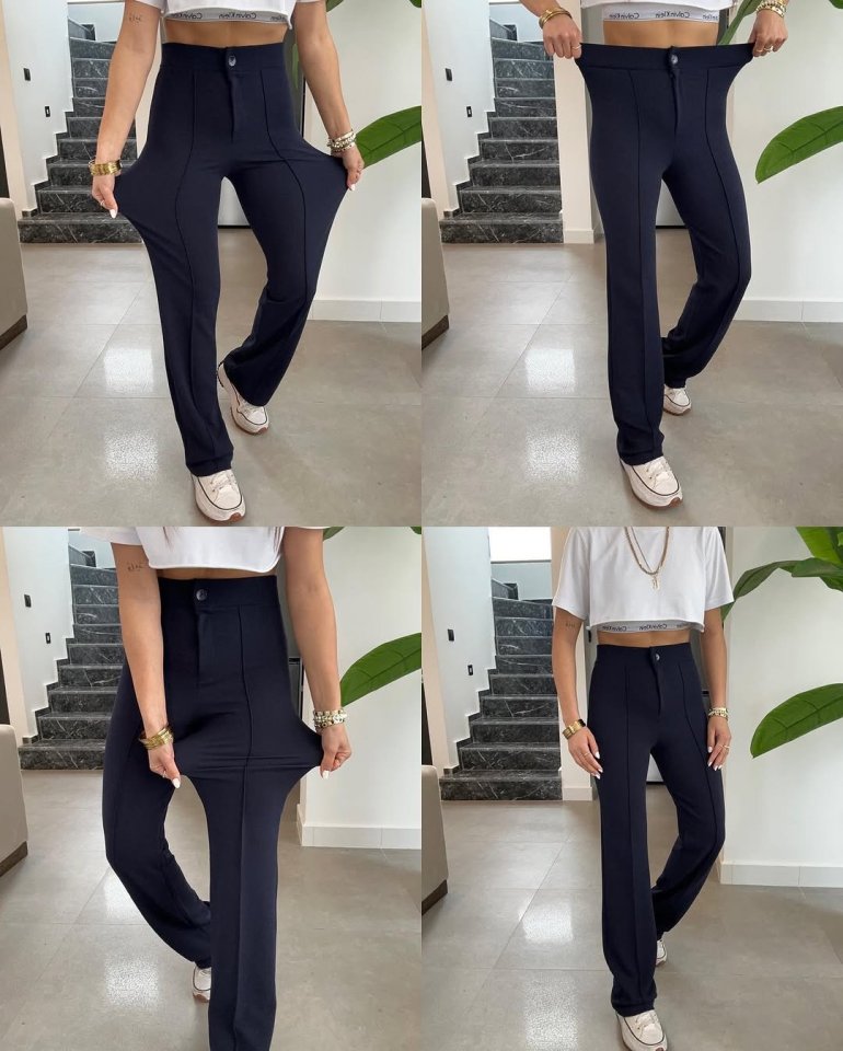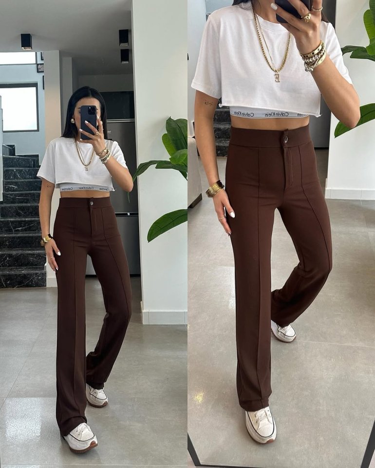 Kadın Yüksek Bel Full Likralı Krep Kumaş Pantolon