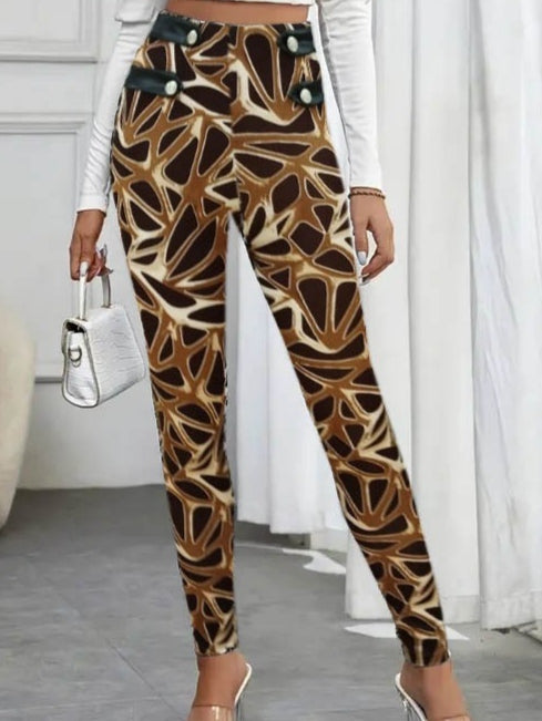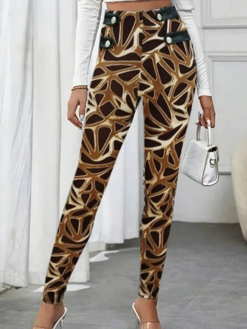 Kadın Yüksek Bel Kaz Ayağı Desenli Yan şerit Düğme Detaylı Dalgıç Pantolon
