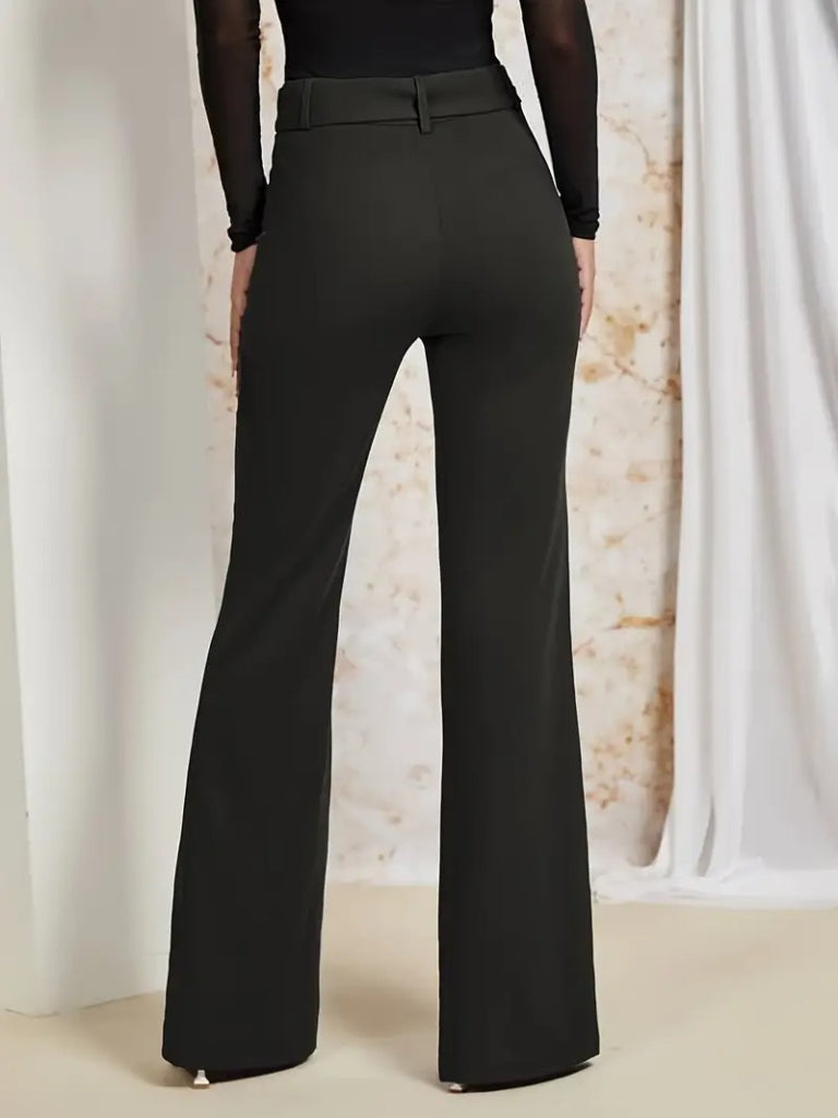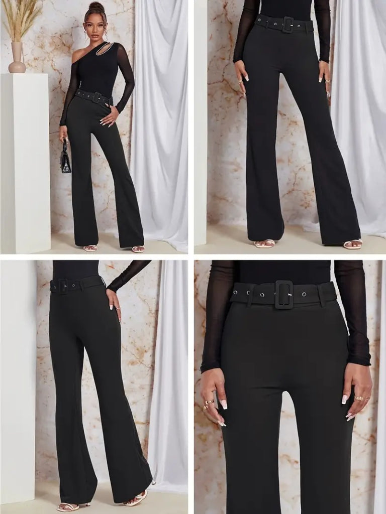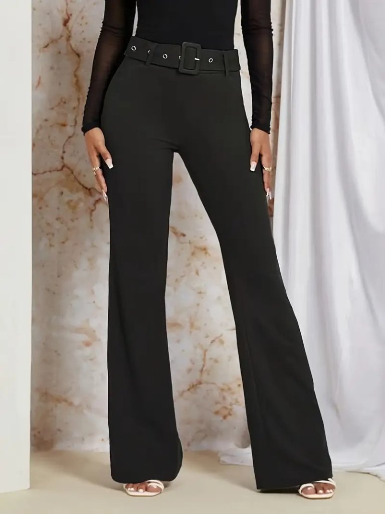 Kadın Yüksek Bel Kemerli Paçaya Doğru Genişleyen Ithal Krep Pantolon