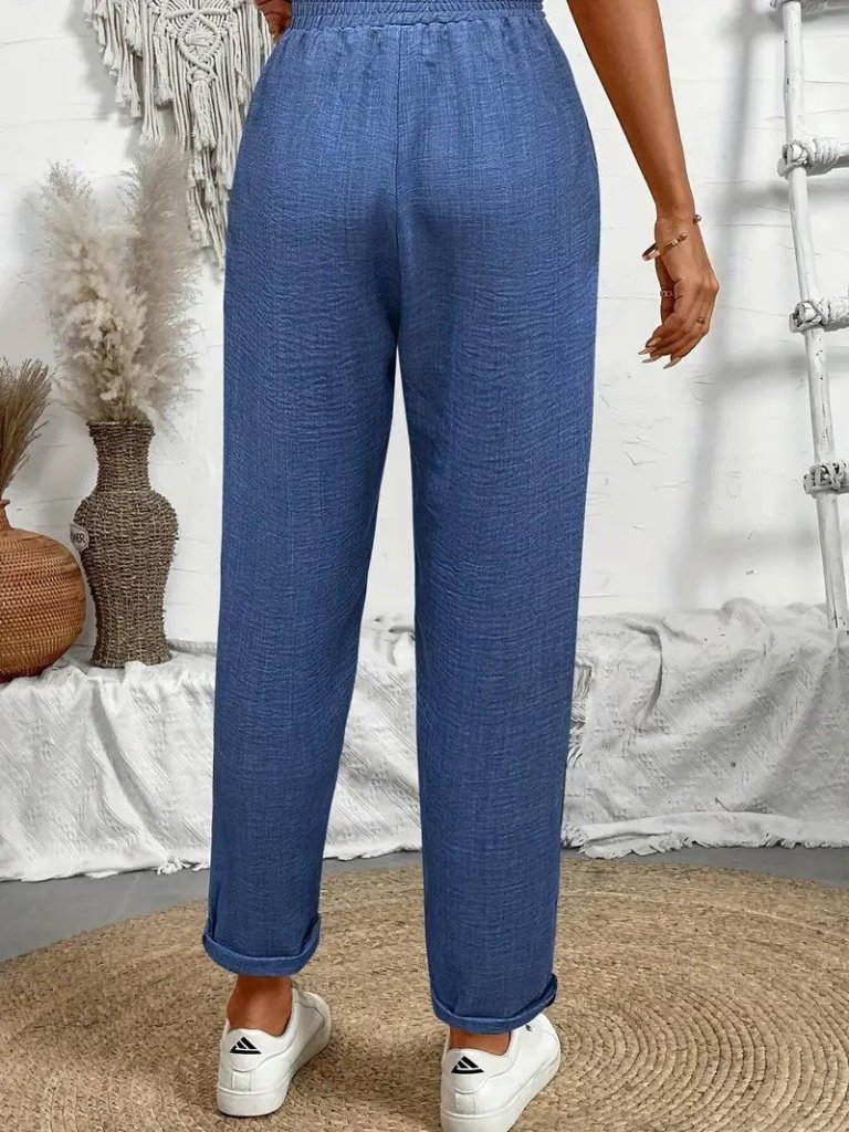Kadın Yüksek Bel Lastikli Belde Bağcık Detaylı Aerobin Pantolon