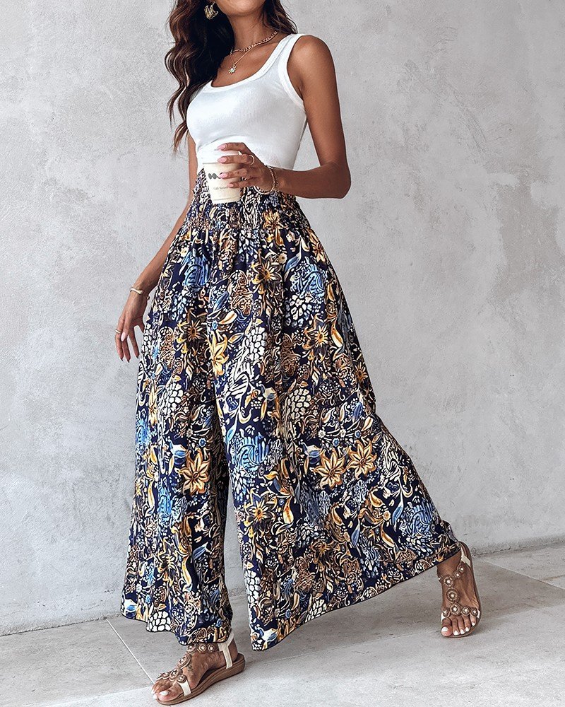 Kadın Yüksek Bel Lastikli Desenli Süprem Pantolon