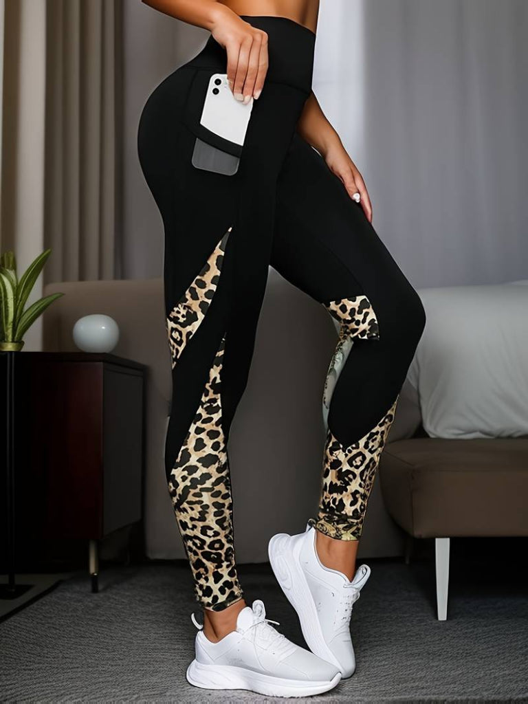 Kadın Yüksek Bel Leopar Detaylı Dalgıç Spor Tayt