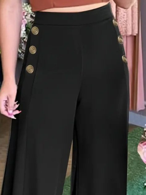 Kadın Yüksek Bel Yan Düğme Detaylı Geniş Paçalı Ithal Krep Pantolon