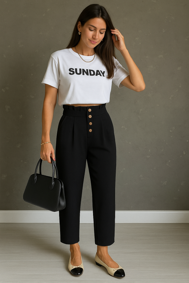 Kadın Yüksek Belli önden Düğmeli Ithal Keten Pantolon