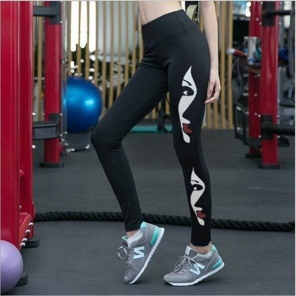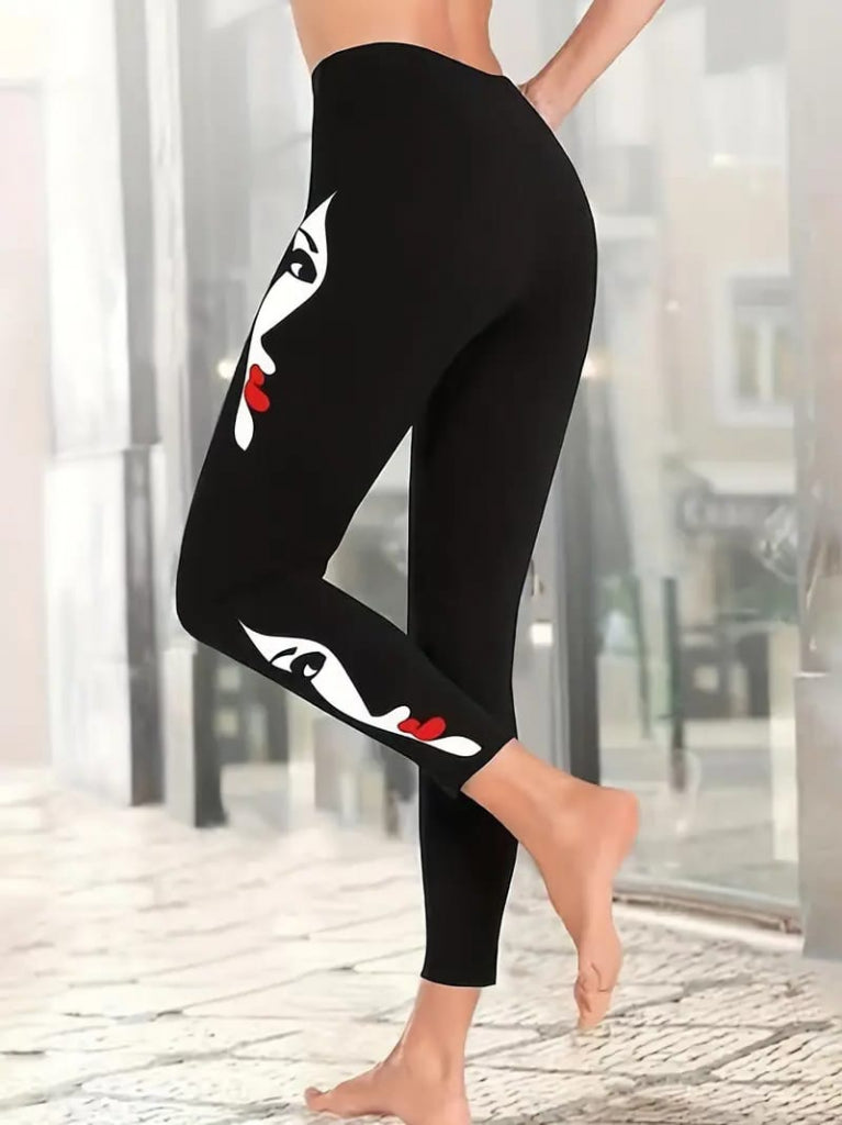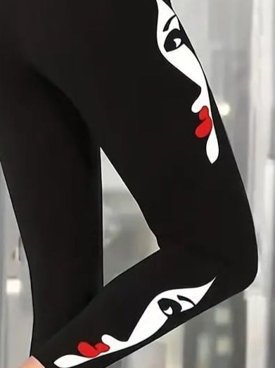 Kadın Yüz Baskılı Dalgıç Kumaş Tayt