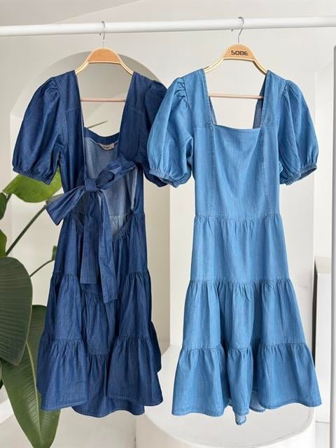 Kare Yakalı Ve Gipe Detaylı Tensel Elbise 2883