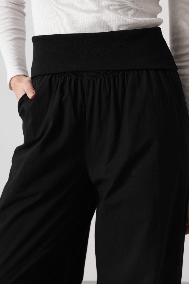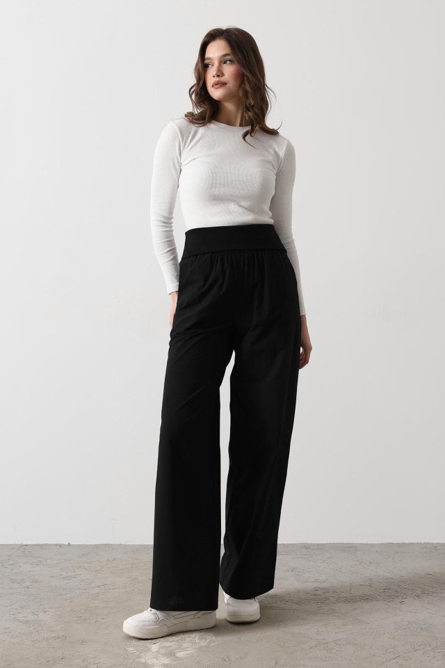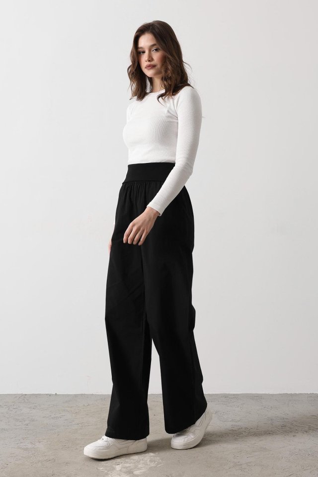 Katlanabilir Bel Pantolon - Siyah