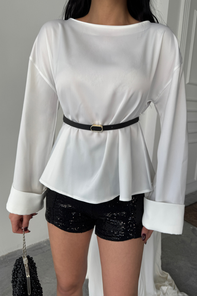 KEMER DETAYLI SATEN BLUZ - Beyaz