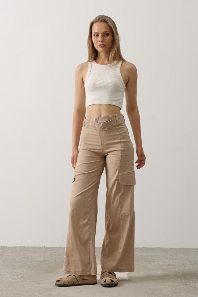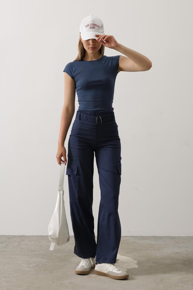 Kemerli Cargo Pantolon - İndigo