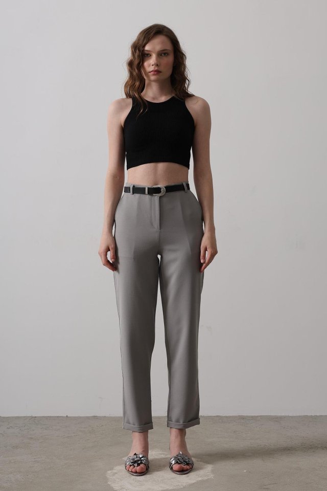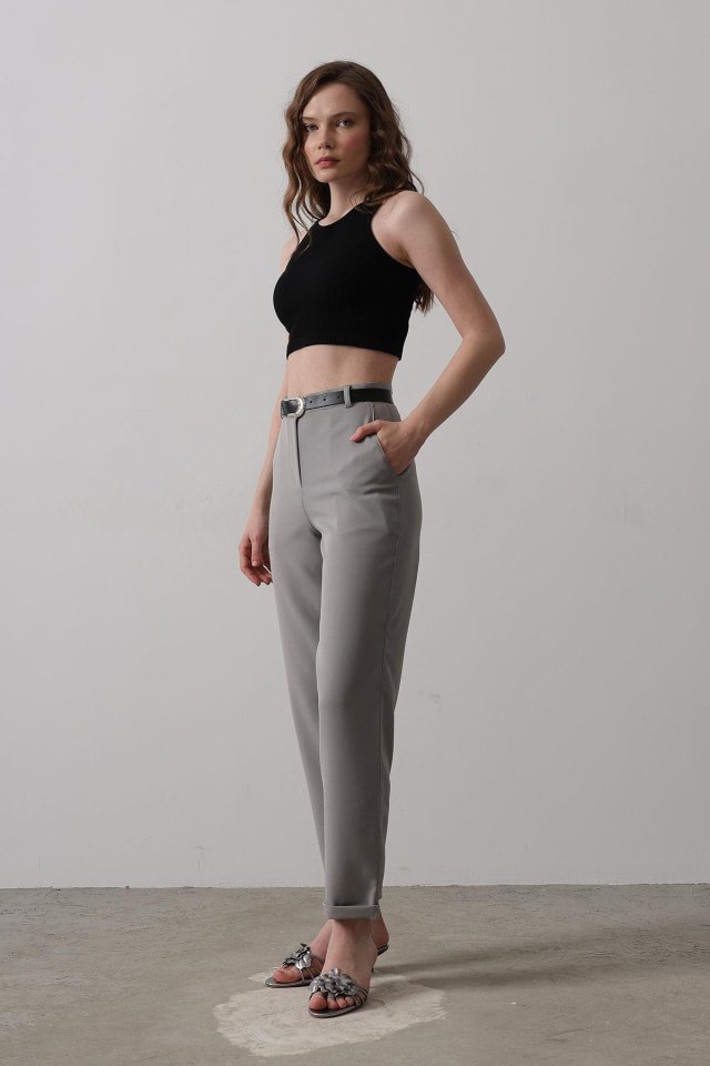 Kemerli Havuç Pantolon - Gri