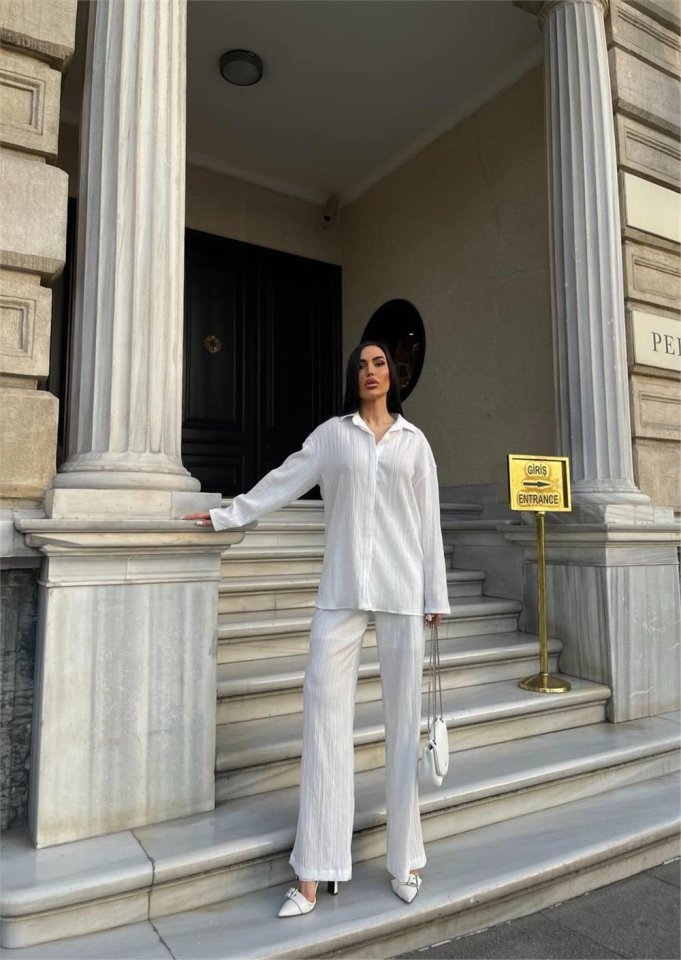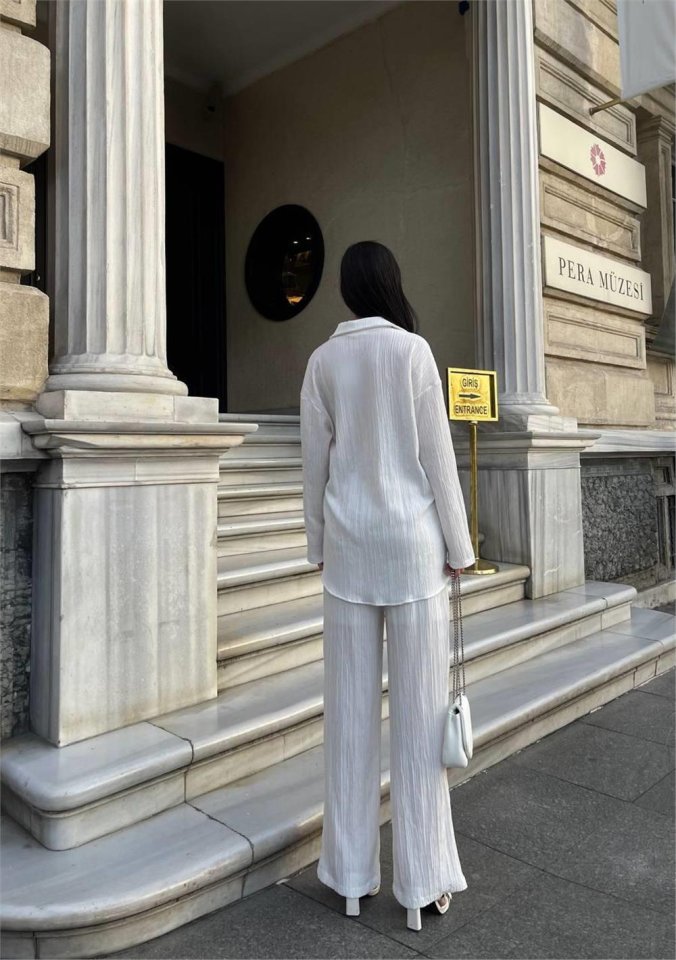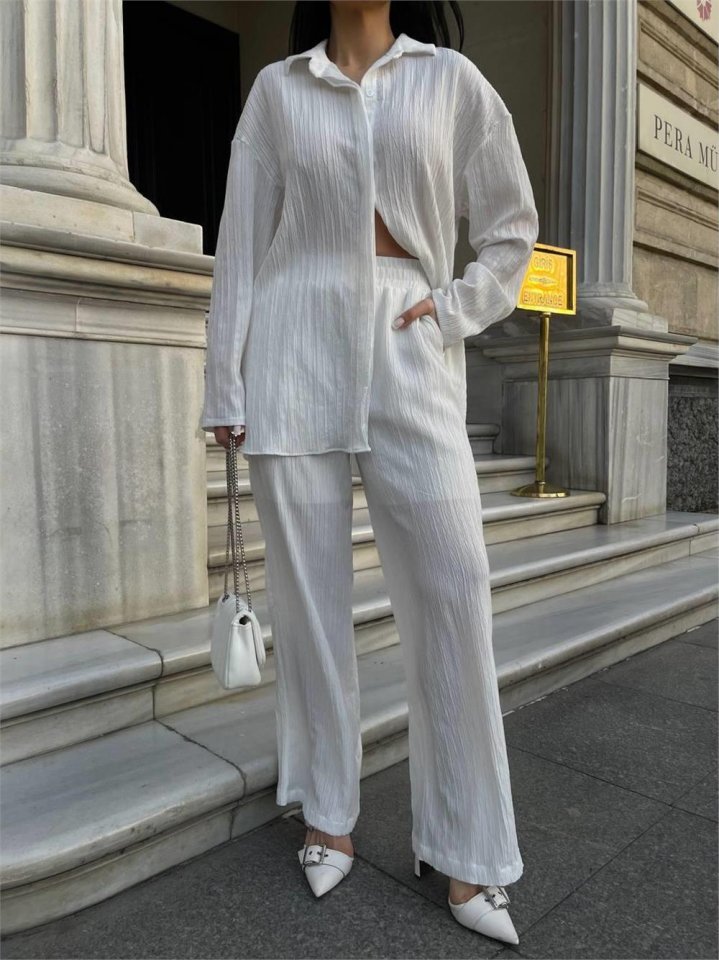 KENDİNDEN DESENLİ KRINKILL GÖMLEK - PANTOLON TK - Orange