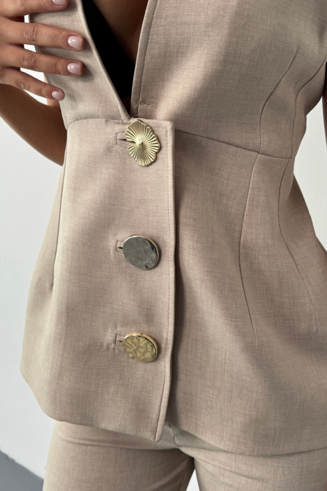 KETEN GOLD DÜĞMELİ YELEK - PANTOLON TK - Bej