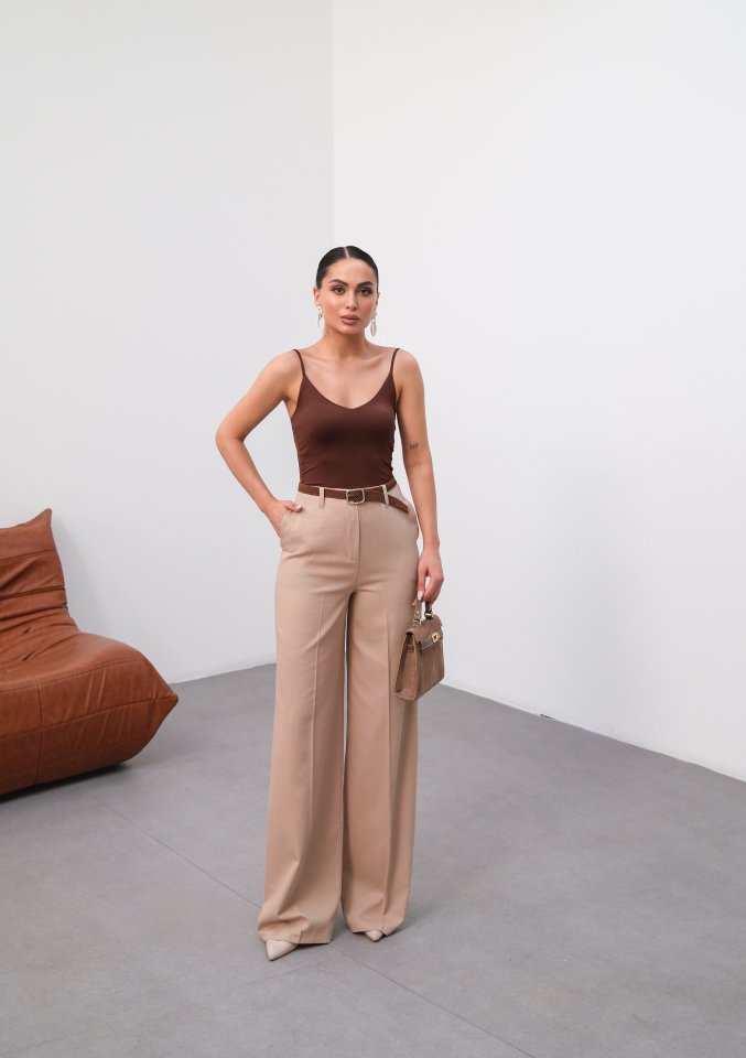 Keten Kemerli̇ Ve Dökümlü Palazzo Pantolon (Kemer Dahi̇l)