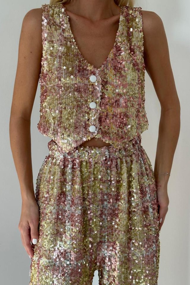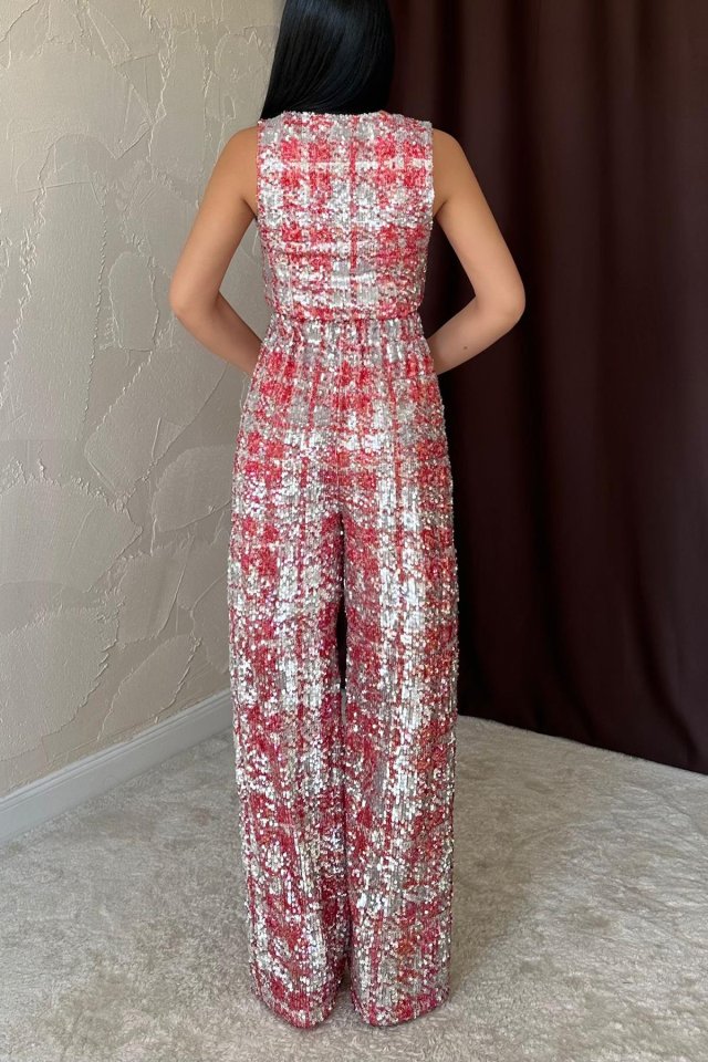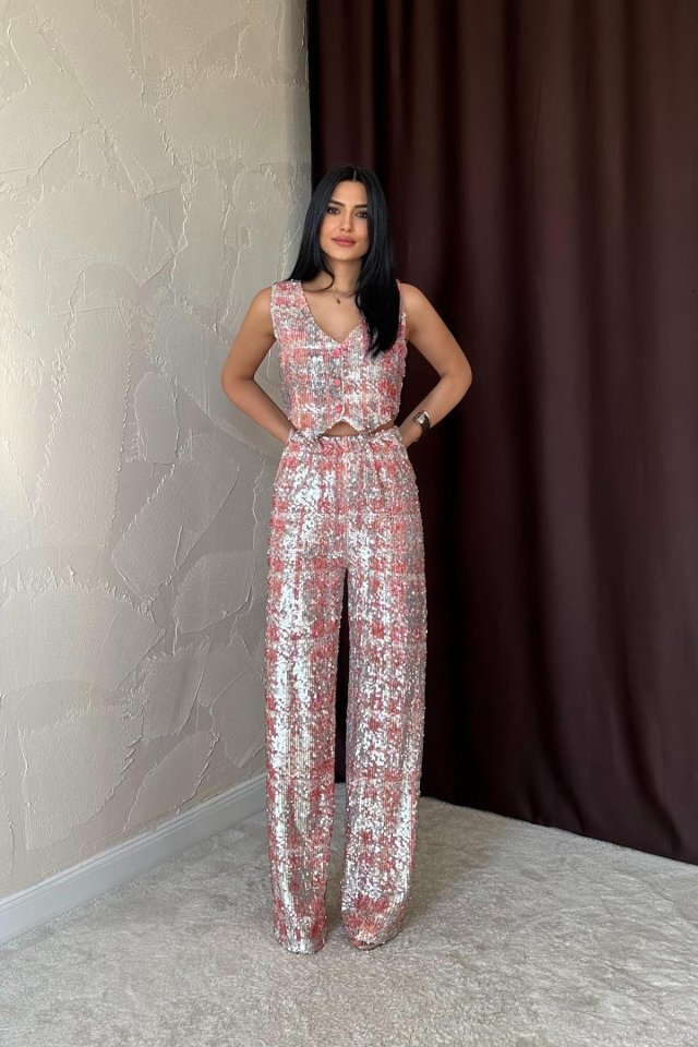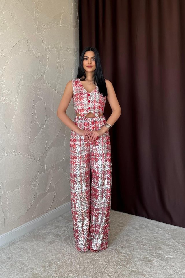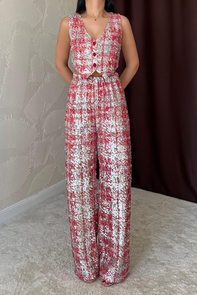Kırmızı Pullu Yelek Ve Pantolon Takım