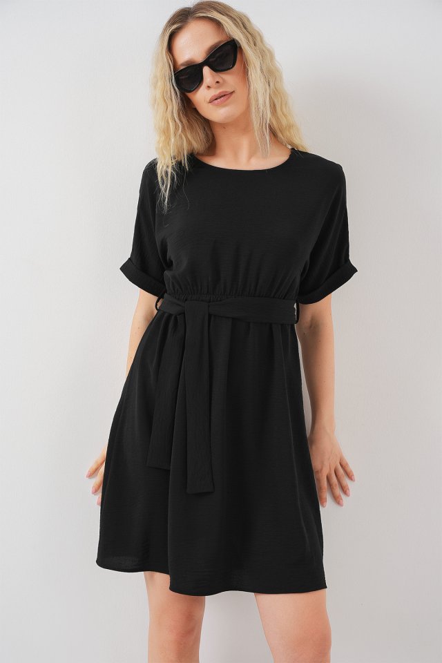 Kısa Kol Mini Ayrobin Elbise 2572 - Krem