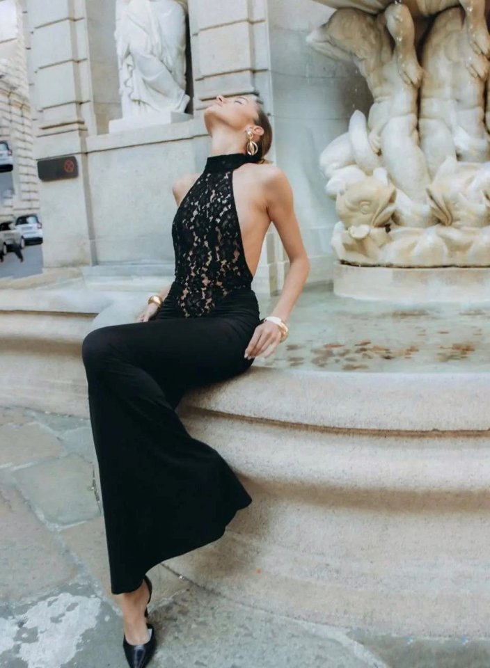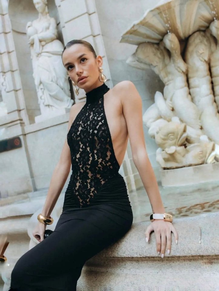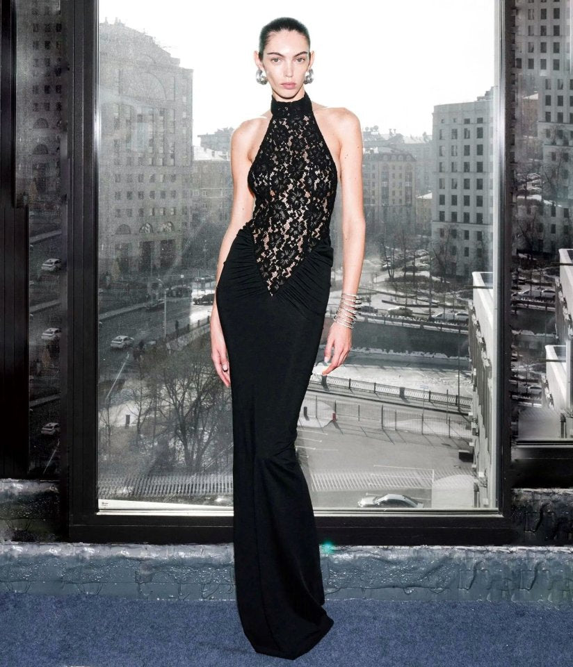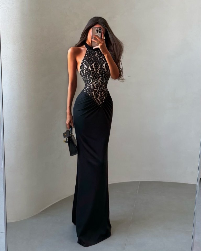 Kitap Okuyalım Mı Kitap Getir Kadın Halter Yaka Fantel Transparan Ve Sırt Dekoltesi Detay Maxi Boy Elbise