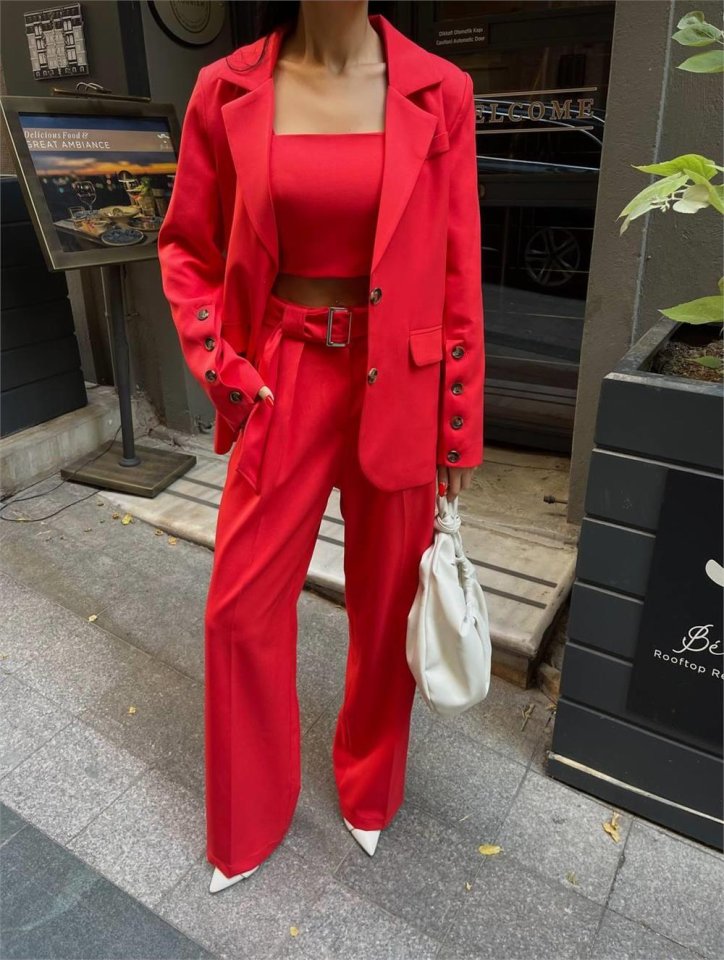 KOL 4 DÜĞME - BÜSTİYERLİ 3 CEKET PANTOLON TAKIM - Kahverengi