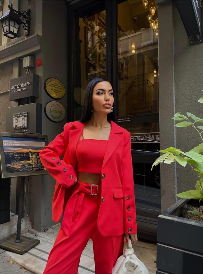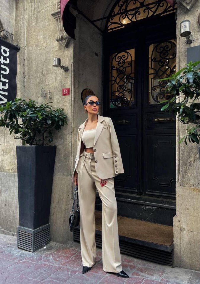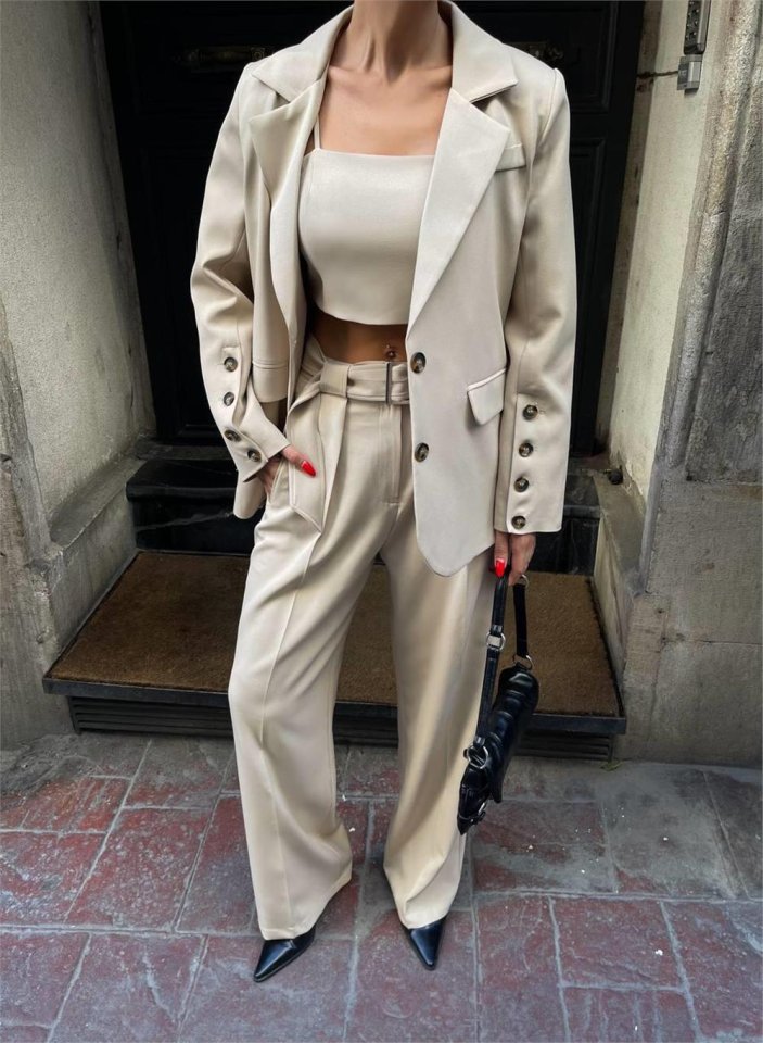 KOL 4 DÜĞME -  BÜSTİYERLİ 3 CEKET PANTOLON TAKIM - Kahverengi