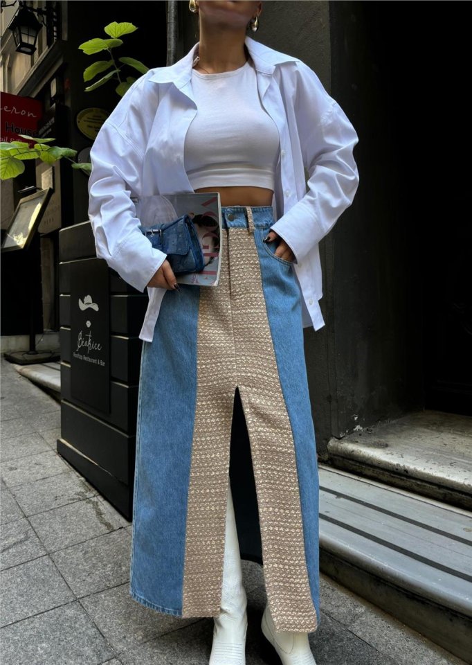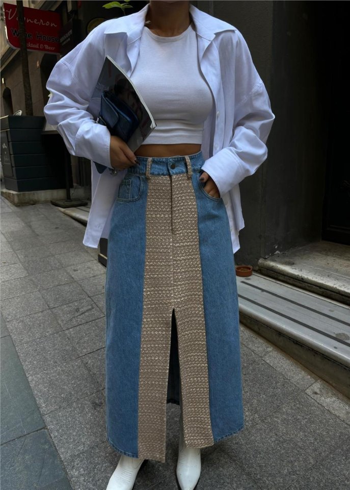 KOT ETEK PARÇALI UZUN ÖNDEN YIRTMAÇLI - Bej