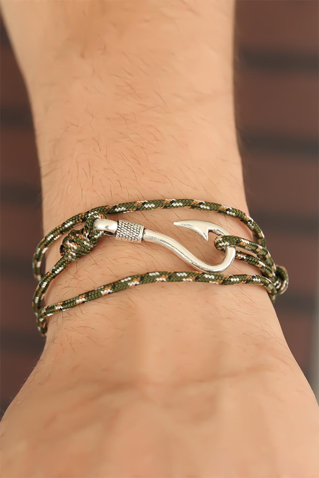 Krem Çizgi Desenli Metal Kancalı Erkek Bileklik