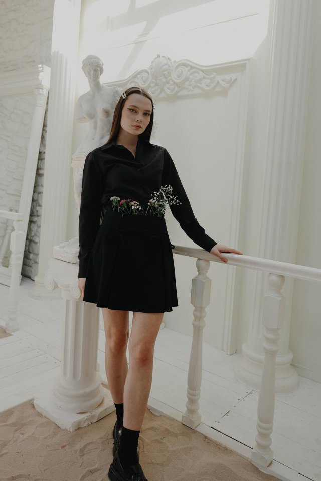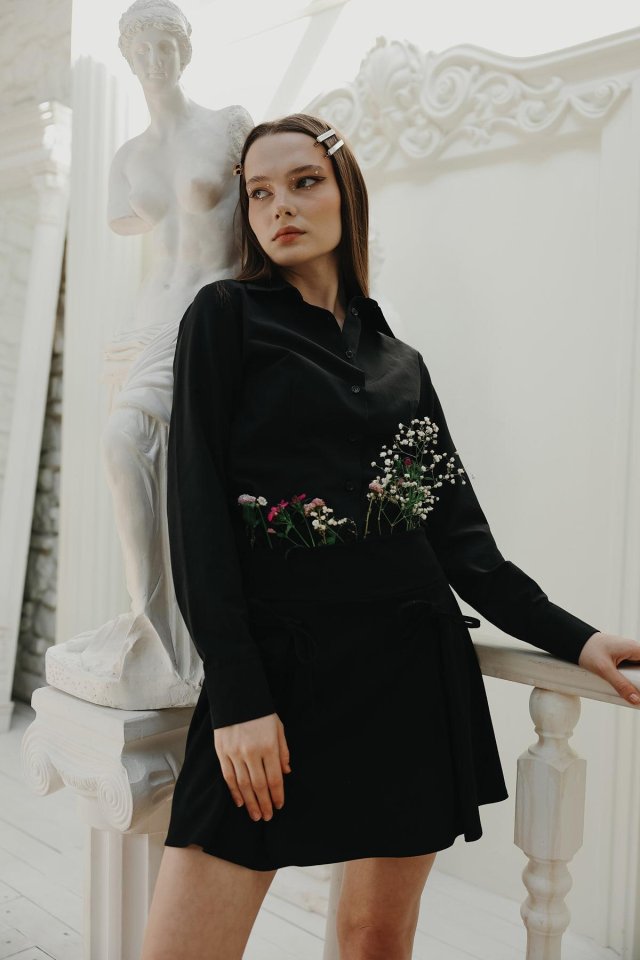 Kurdela Detaylı Mini Etek - Siyah