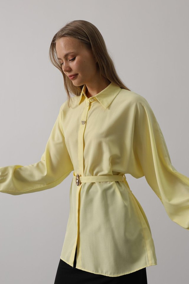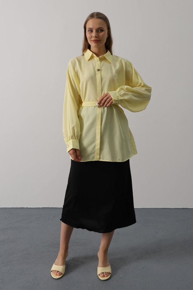Kuşak Detaylı Tunik Gömlek - Sarı