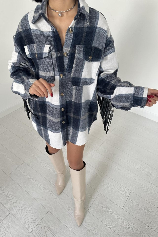 Lacivert Arkası Püsküllü Gömlek