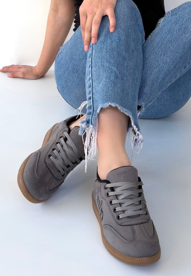 Lendo Gri Süet Bağcıklı Spor Ayakkabı