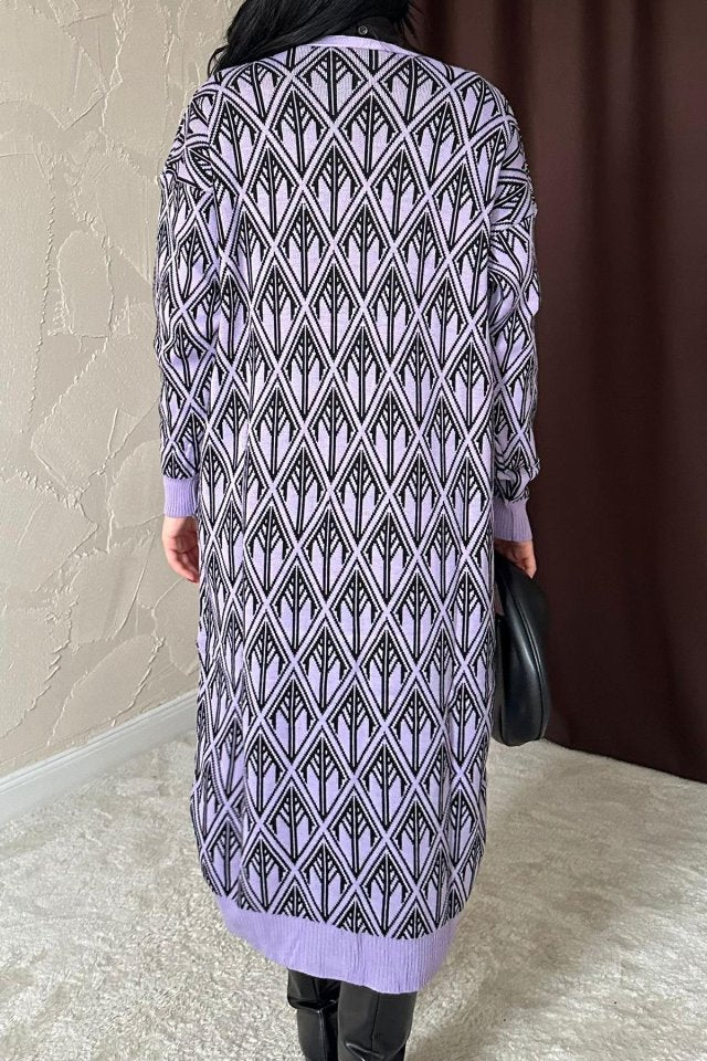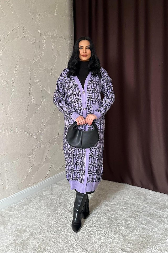 Lila Düğmeli Triko Hırka