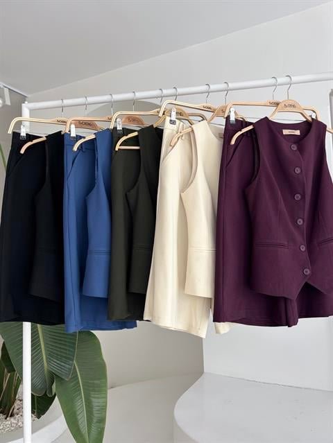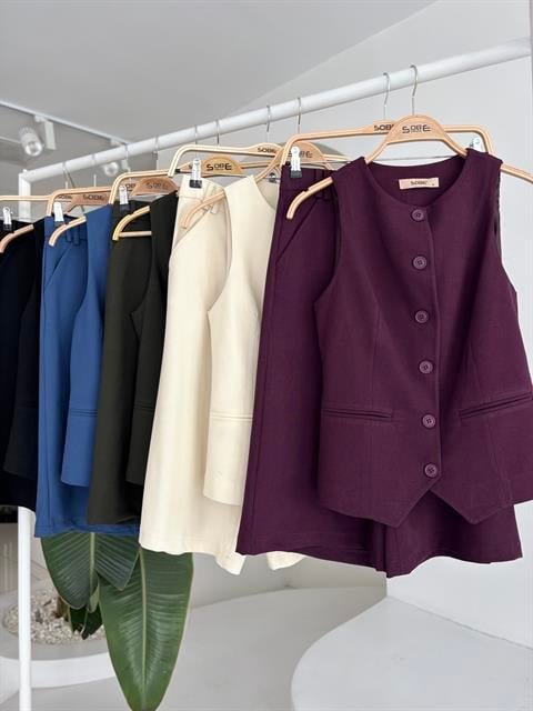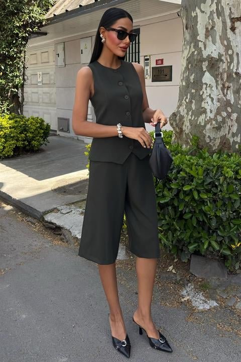 Midi Şortlu Ve Yelekli Viscon Takım 10167