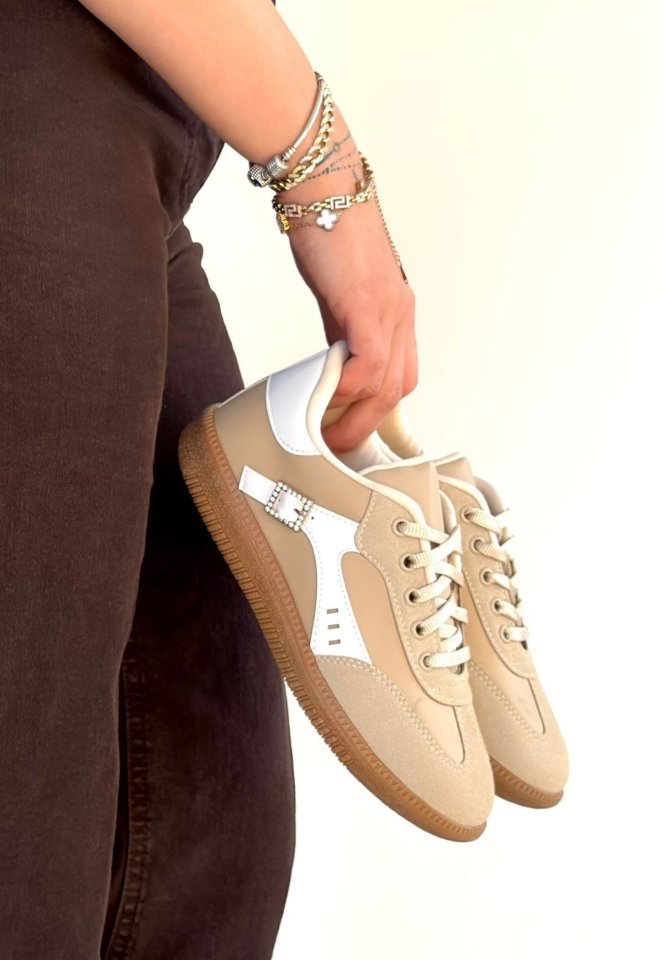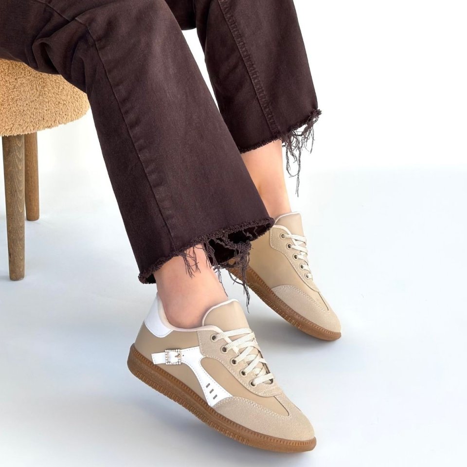 Mier Bej Cilt Bağcıklı Spor Ayakkabı