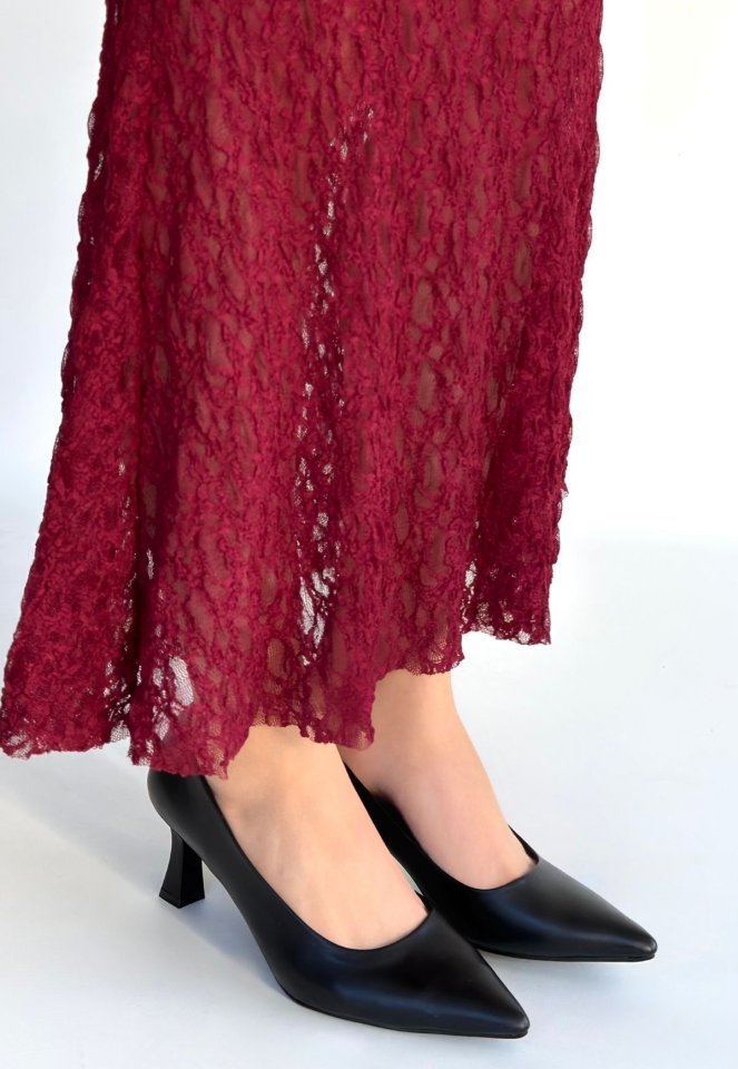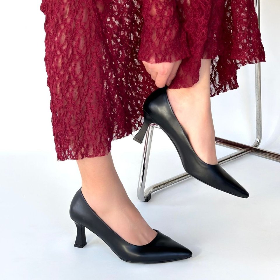 Mırta Siyah Cilt Topuklu Ayakkabı