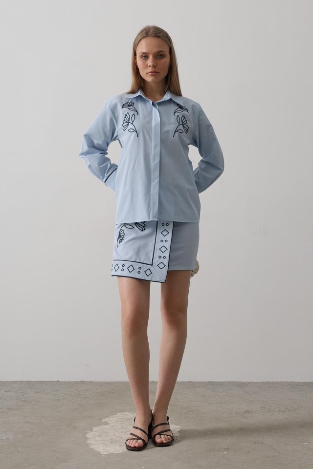Nakış Detaylı Etekli Takım - Bebe Mavisi