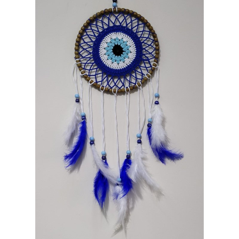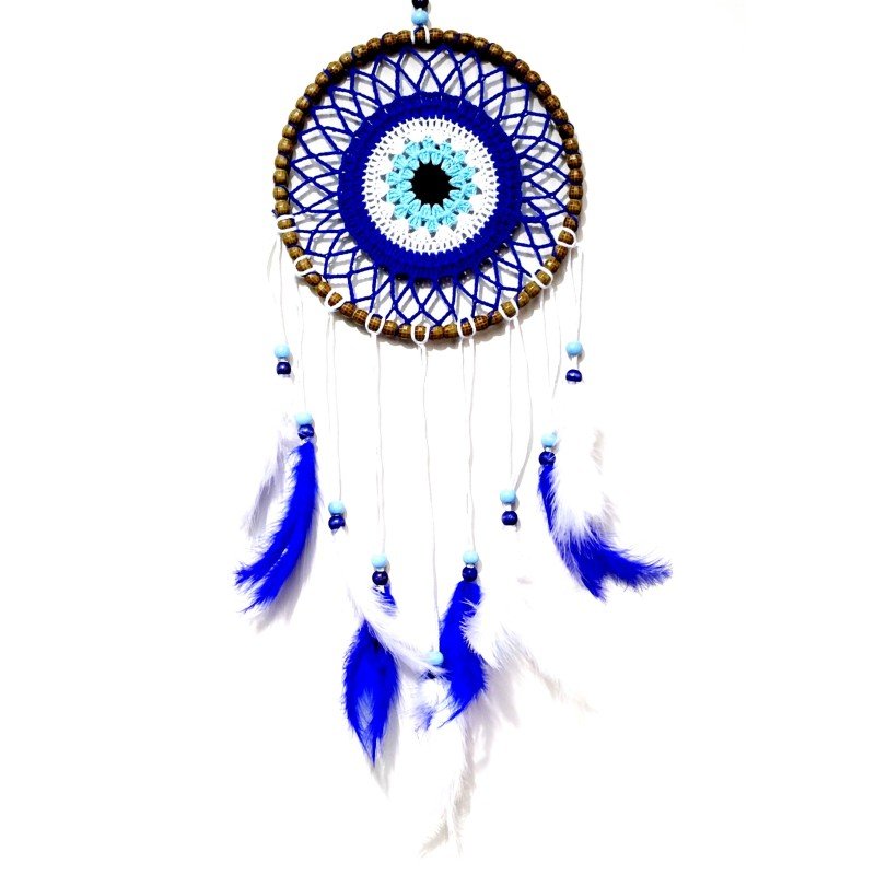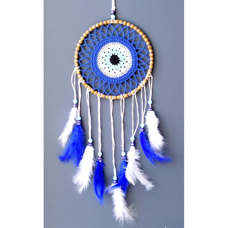 Nazar Boncuğu Desenli Kuş Tüylü El Yapımı Düş Kapanı Duvar Süsü