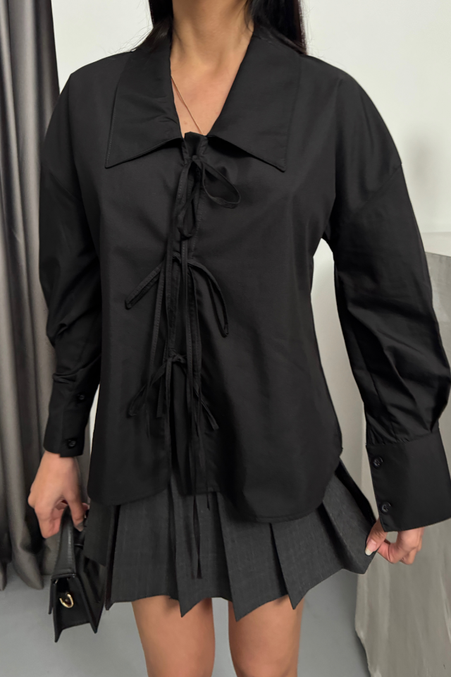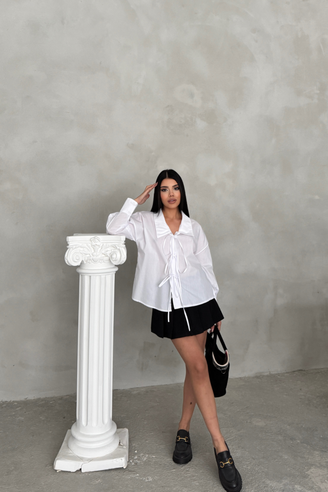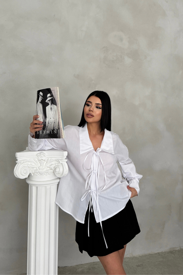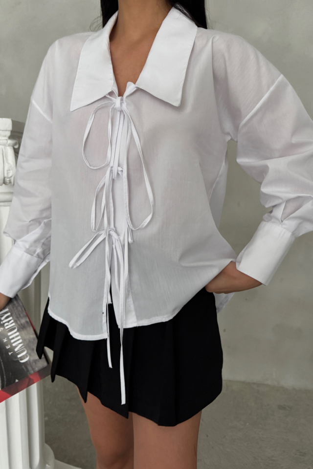 OKUL YAKA POPLİN GÖMLEK İP BAĞLAMA DETAYLI - Beyaz
