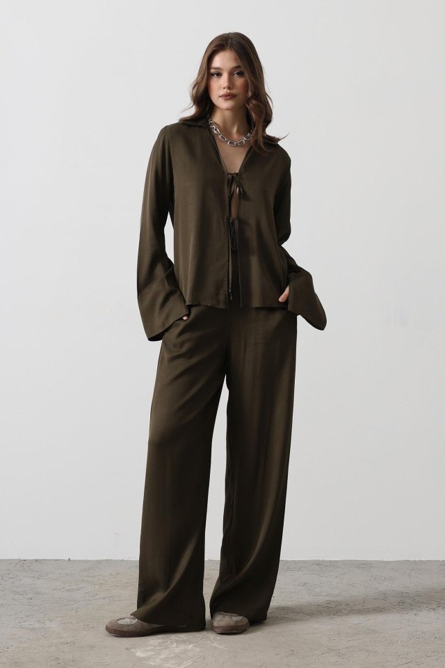 Önden Biyeli Bluz Ve Pantolon Takım - Haki