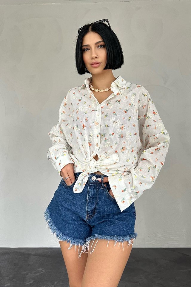 Oranj Brode Çiçek Nakışlı Klasik Gömlek