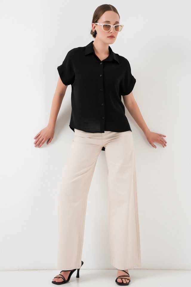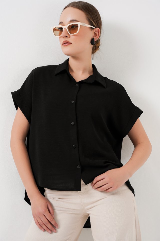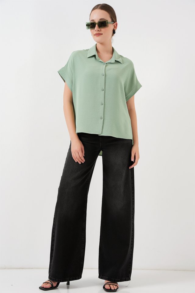 Oversize Kısa Kol Gömlek 20322 - Çağla