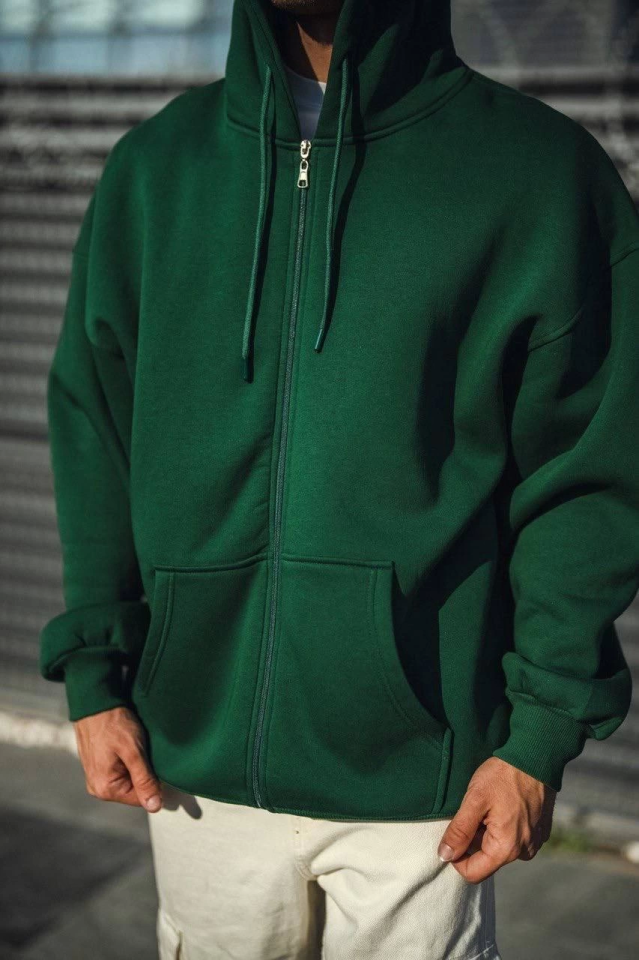 Oversize Tam Fermuarlı Uzun Kol Hırka - Haki