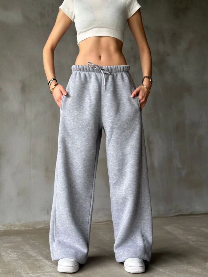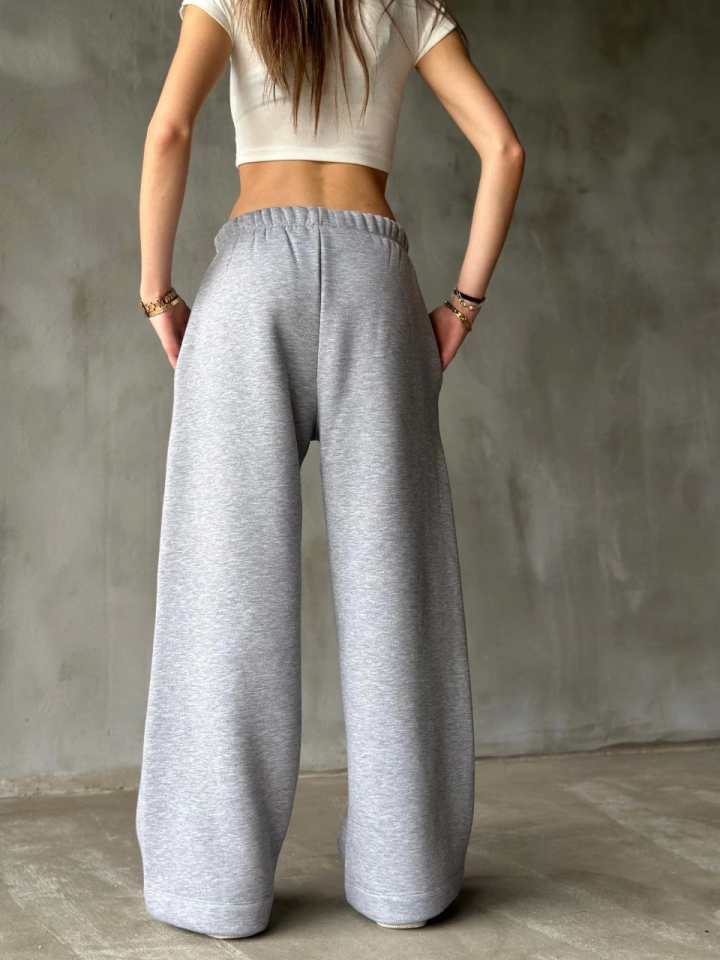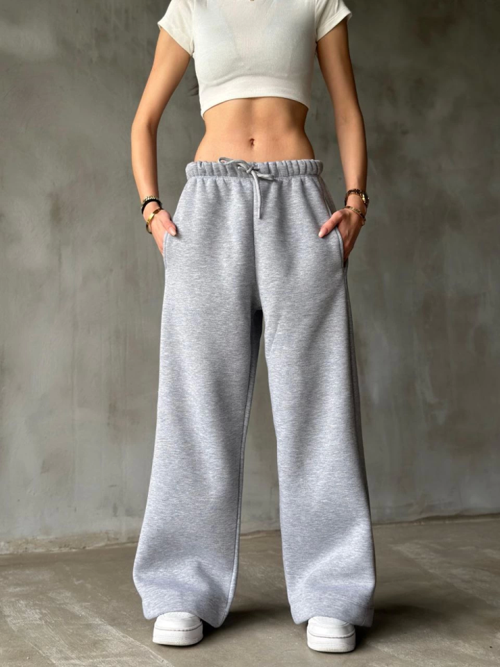 Palazzo Bol Paça Eşofman Pantolon - Gri