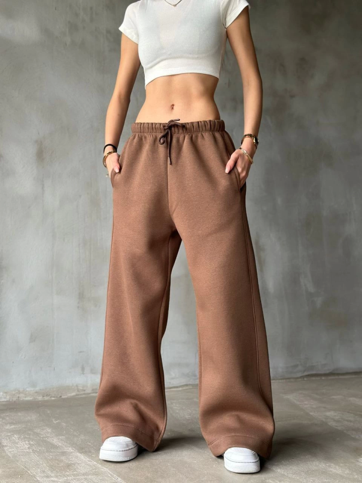 Palazzo Bol Paça Eşofman Pantolon - Kahve