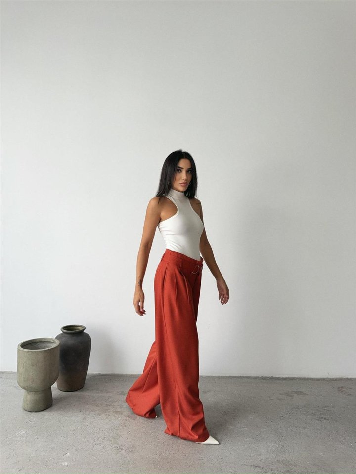 PALAZZO PANTOLON KUMAŞ KEMER DETAYLI - Kiremit