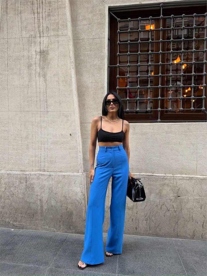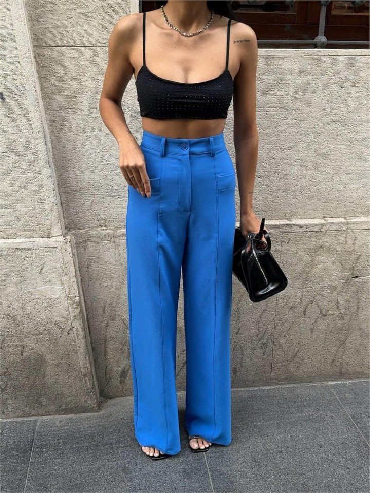 PANTOLON KAPALI CEP DETAYLI SALAŞ PANTOLON - Mavi