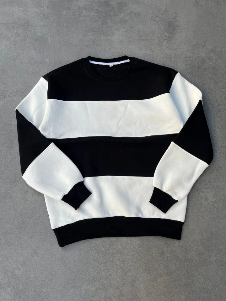 Parçalı Bisiklet Yaka Baskılı SweatShirt - Siyah