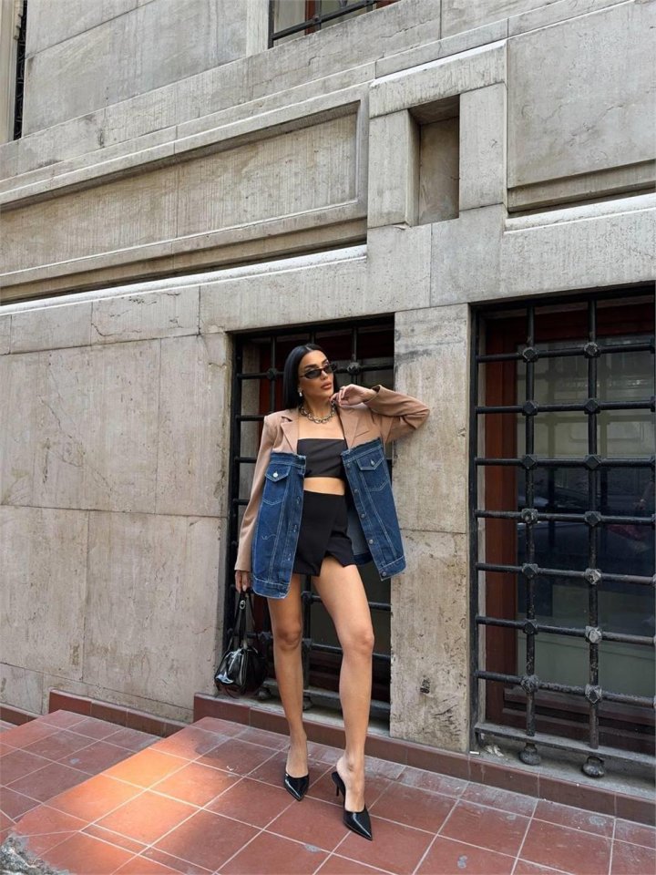 PARÇALI CEKET ÜST ATLAS - ALT KOT - Kahverengi
