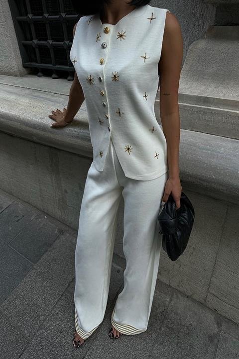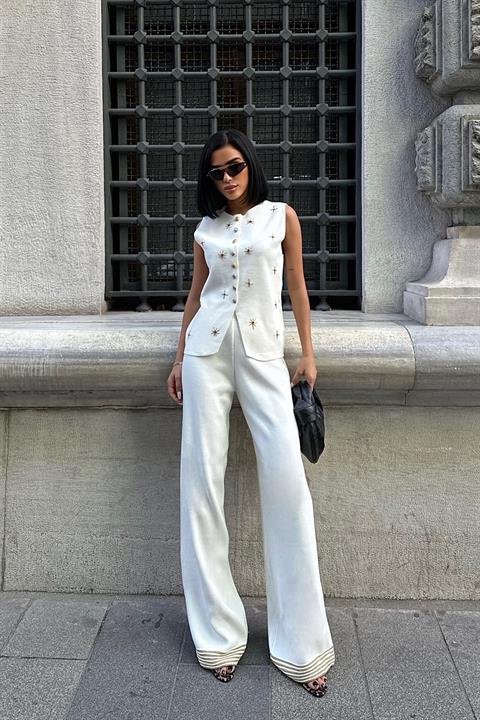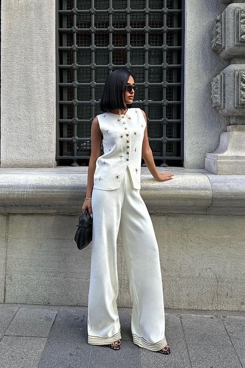 Paulo Gold Düğmeli Yelek Pantolon Takım 9976