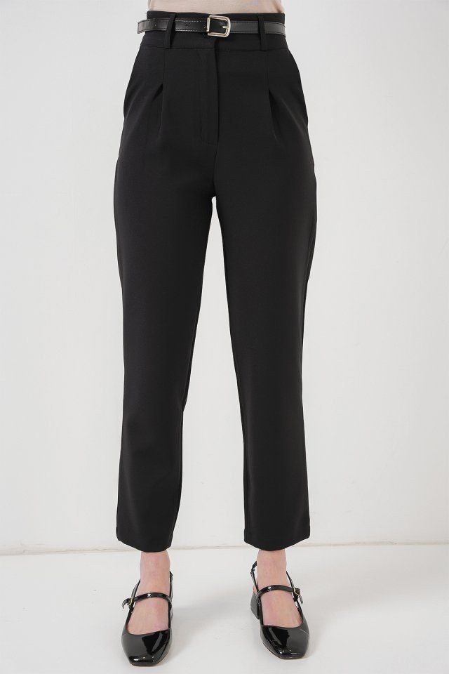 Pileli Kemerli Kumaş Pantolon 6725 - Siyah